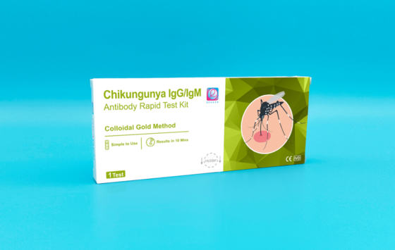 I prodotti diagnostici in vitro offrono un formato di test Immunoassay all'avanguardia, progettato specificamente per rilevare gli anticorpi IgG/IgM Chikungunya. Questo prodotto avanzato è confezionato in un vivace imballaggio a colori, che lo rende facilmente identificabile in un ambiente di laboratorio affollato.